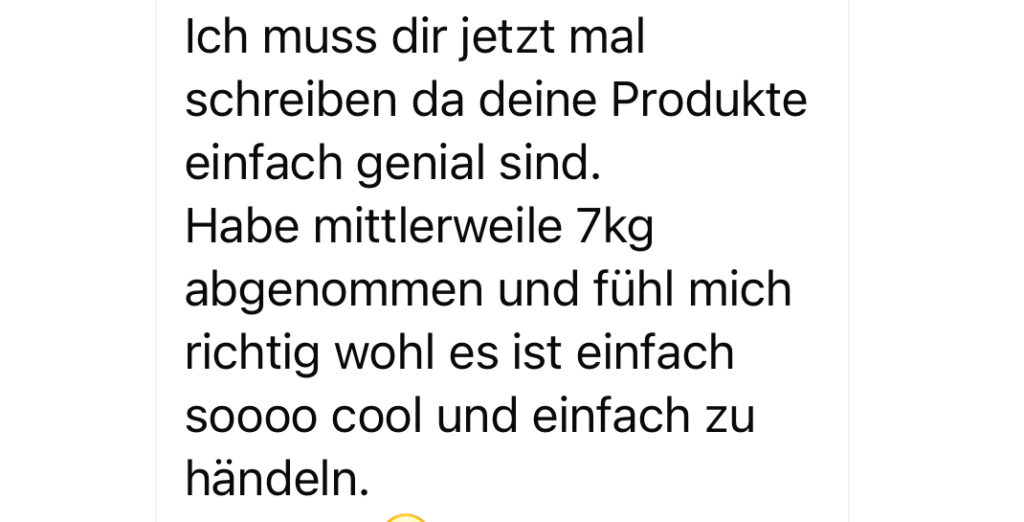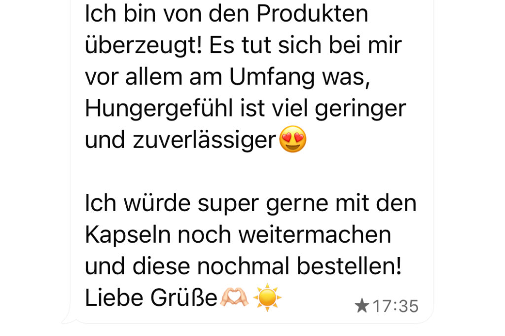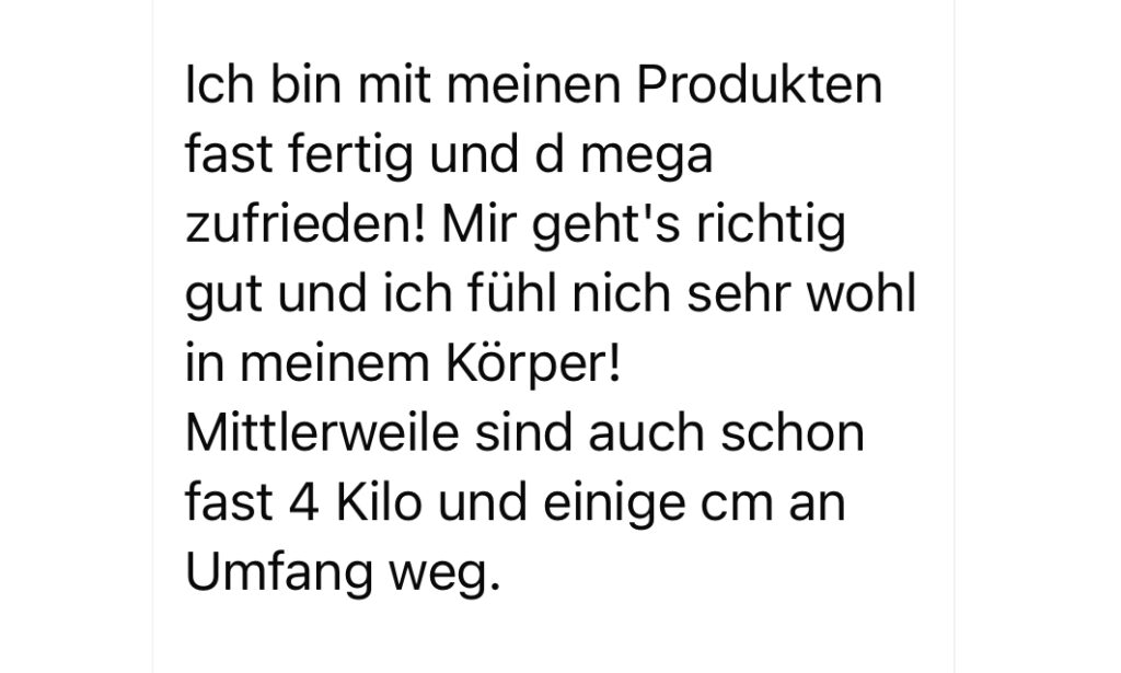 Ich bin von den Produkten überzeugt! Es tut sich bei mir vor allem am Umfang was, Hungergefühl ist viel geringer und zuverlässiger😍