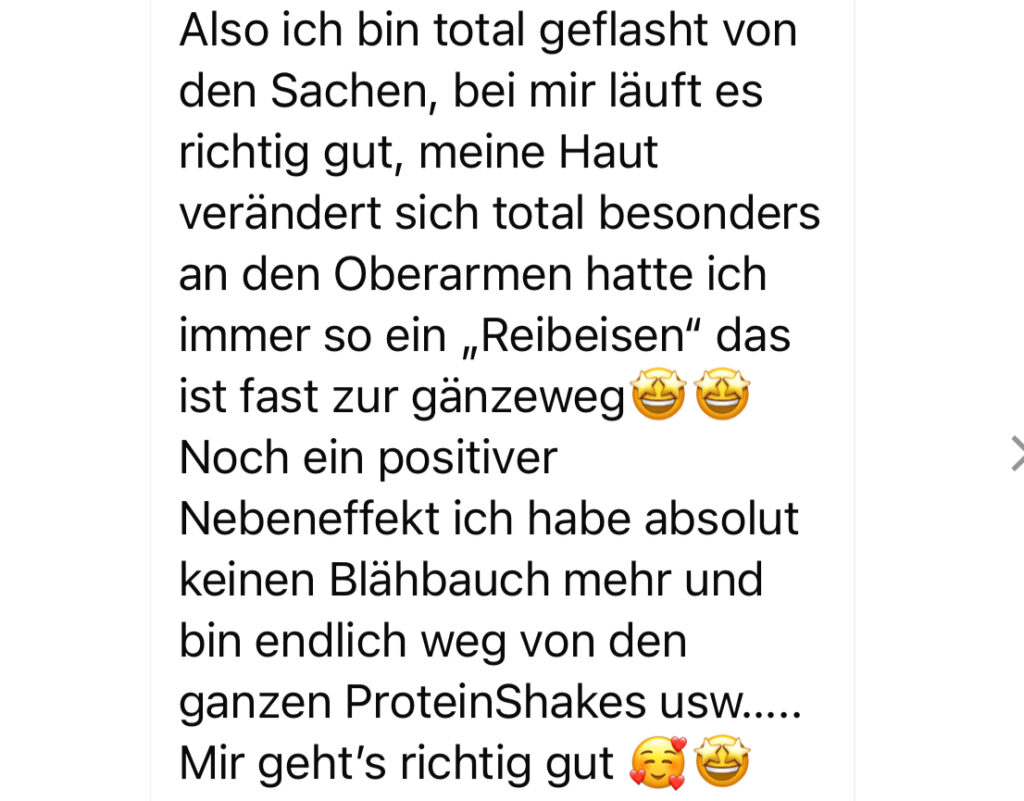 Noch ein positiver Nebeneffekt ich habe absolut keinen Blähbauch mehr und bin endlich weg von den ganzen ProteinShakes usw…. Mir geht’s richtig gut 🥰🤩